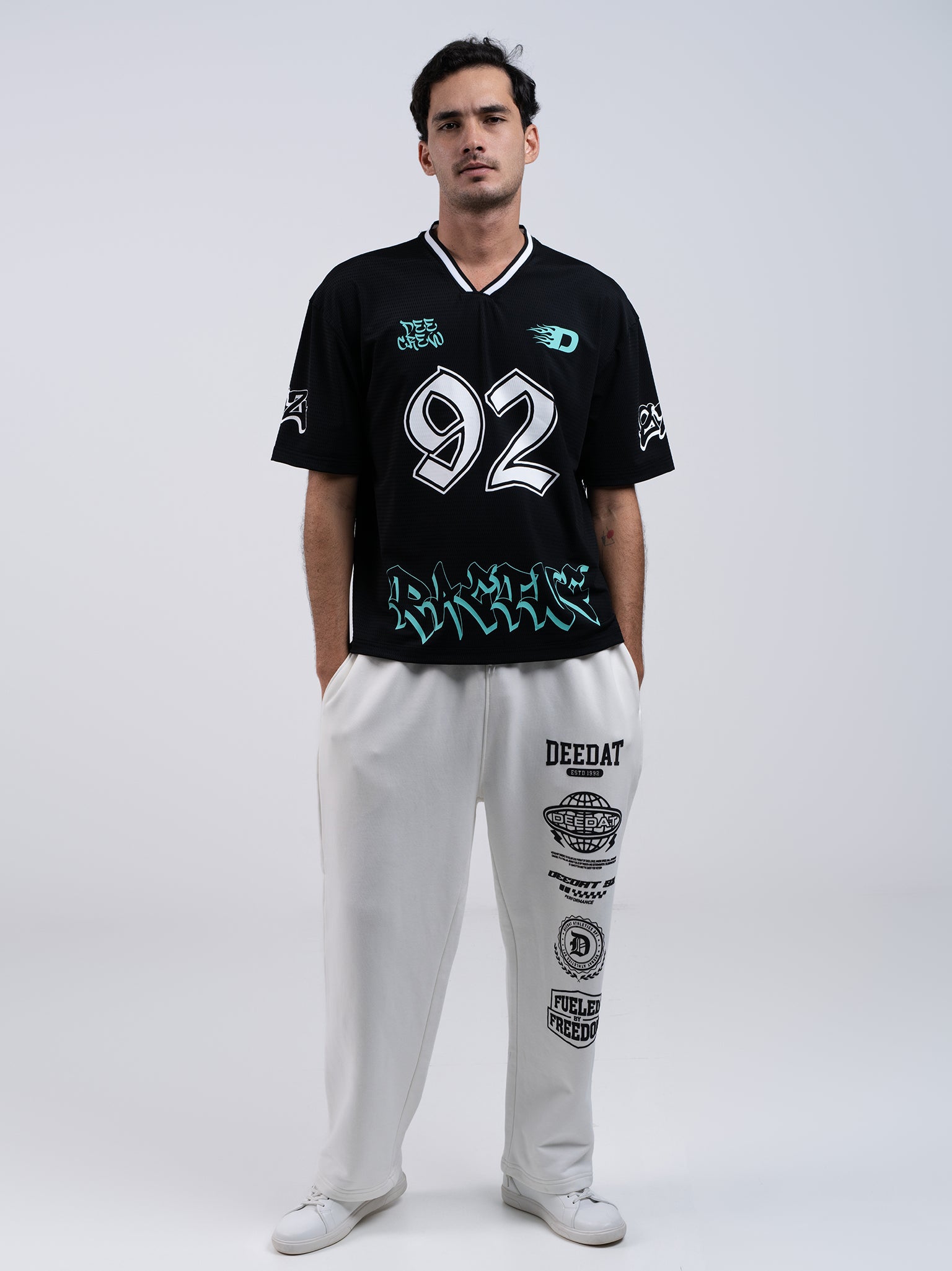 This DEEDAT Fueled By Freedom Oversized Tee Shirt in black combines comfort and style with its premium cotton fabric and oversized fit. Featuring a classic crew neck and short sleeves, it offers a relaxed silhouette with a standard hem for versatile wear. The plain texture is enhanced by a durable rubber print embellishment, making it a standout piece in the Fueled By Freedom collection. Ideal for those seeking a fashion-forward yet comfortable tee.
